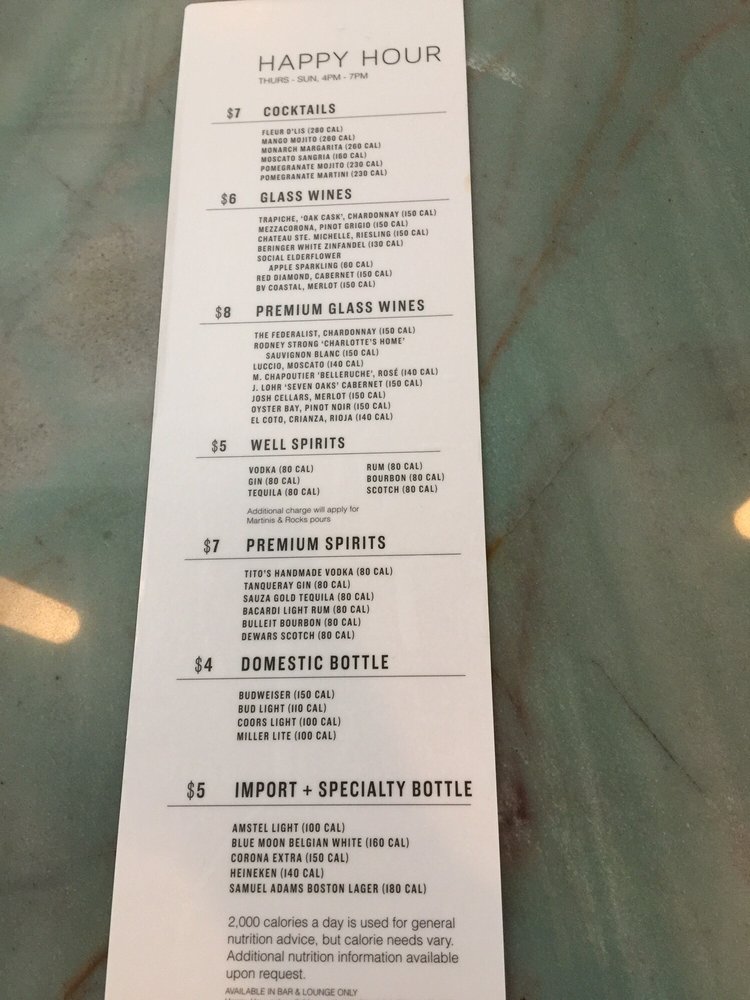“ Excellent happy hour The food and beverage selection was and always is amazing. The front of house staff and afternoonevening manager on duty continue to make sure all are happy and have what they need when there. She also makes her rounds with the regulars to check in to see about any other things they may want and to see how they are...great customer service. ”